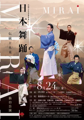 400年続く日本舞踊、伝統を未来へとつなげるべく、花柳流男性舞踊家5人が、仙台に集まりました。迫力ある「舞踊」、筝に合わせた情緒ある「舞」、和と洋の「コラボ」、そして可愛くて元気な子供達の「踊りと筝演奏」、様々な日本舞踊をお楽しみください。